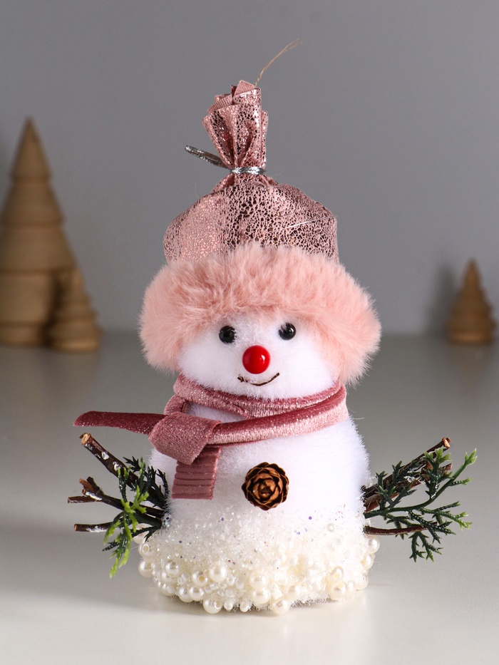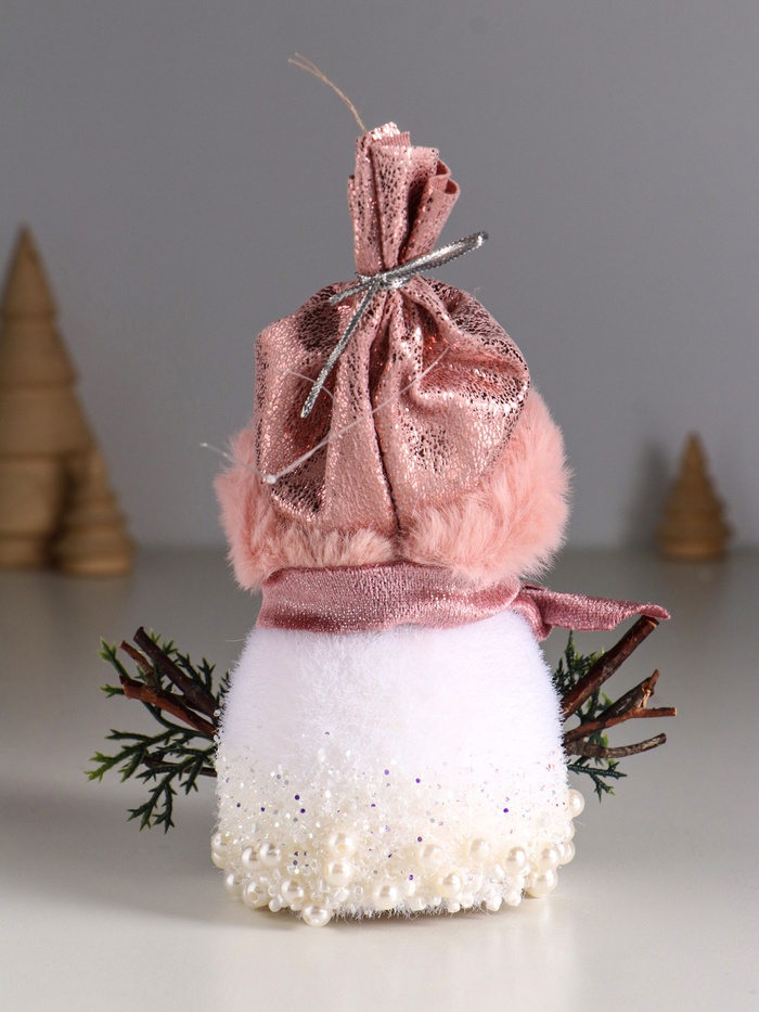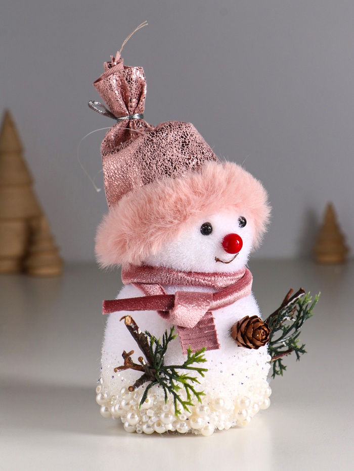Фигурка «Снеговичок в розовом колпаке, в бусинках», 14×12×8 см