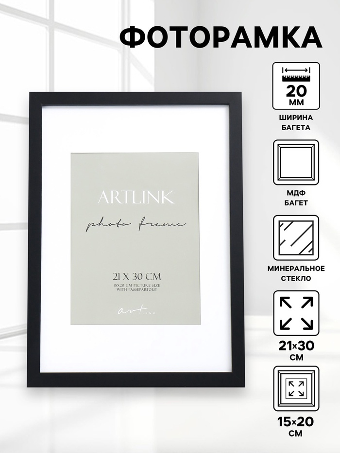 Фоторамка для фото 21×30 см Ellis, МДФ, с паспарту 15×20 см, чёрный