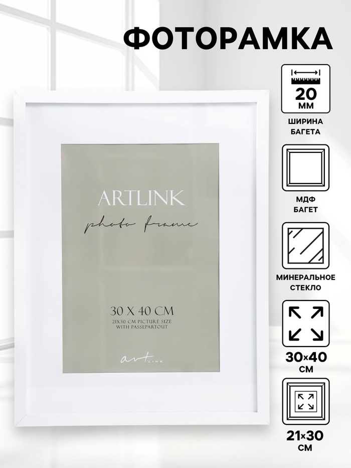 Фоторамка для фото 30×40 см Ellis, МДФ, с паспарту, белый
