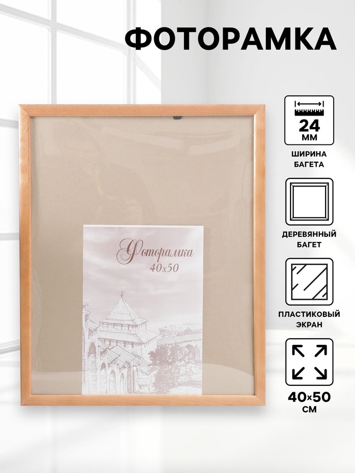 Фоторамка для фото 40×50 см Bridgeport, сосна, (пластиковый экран), дуб
