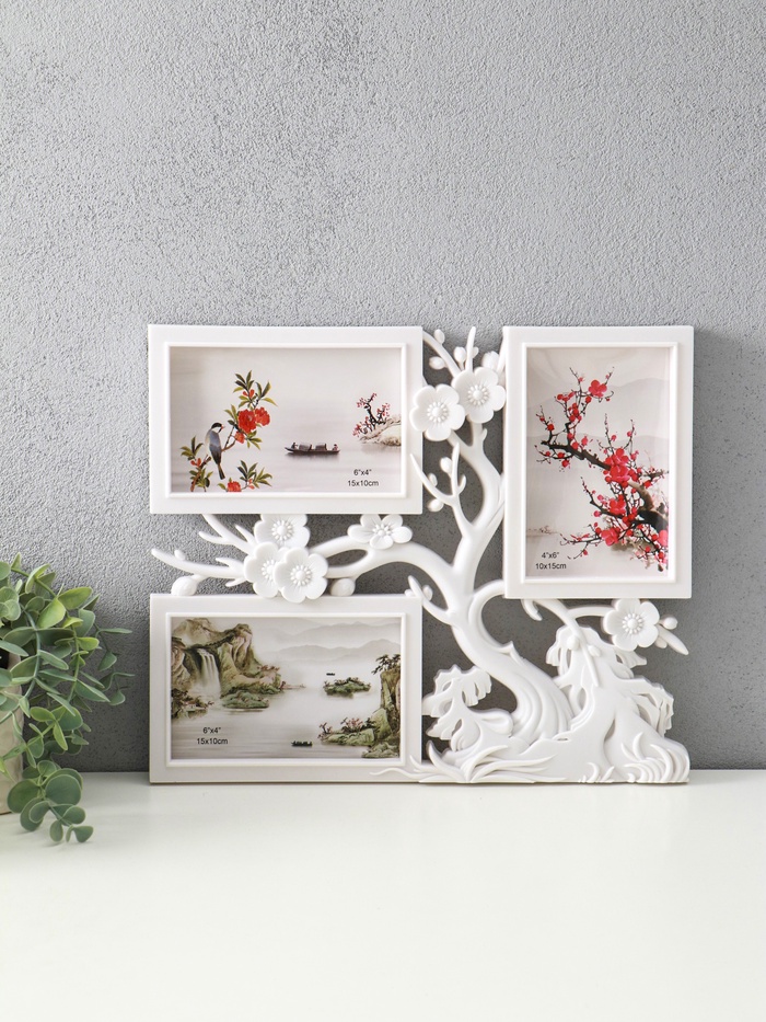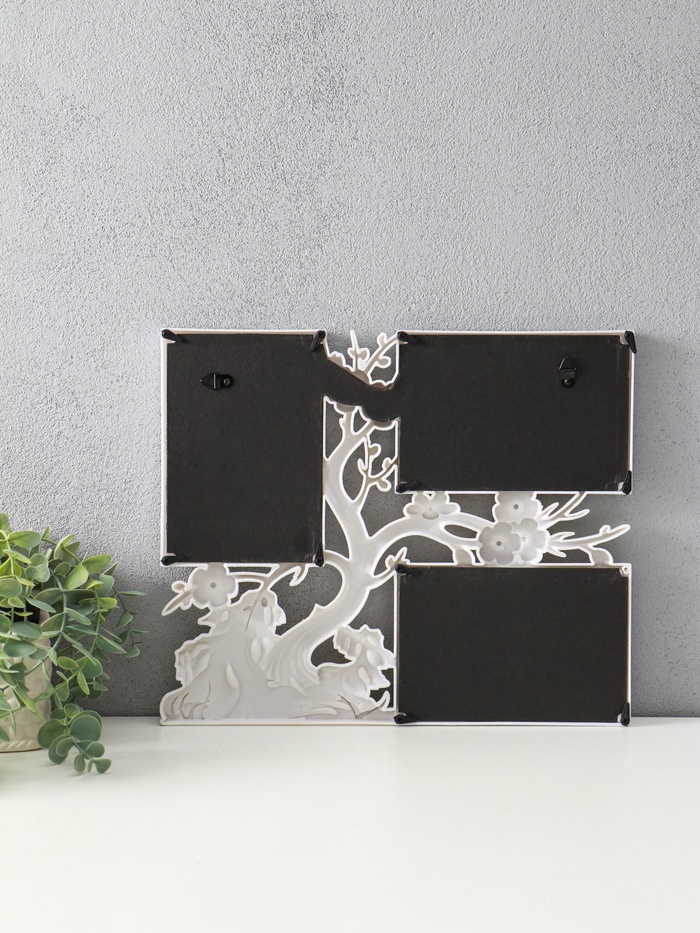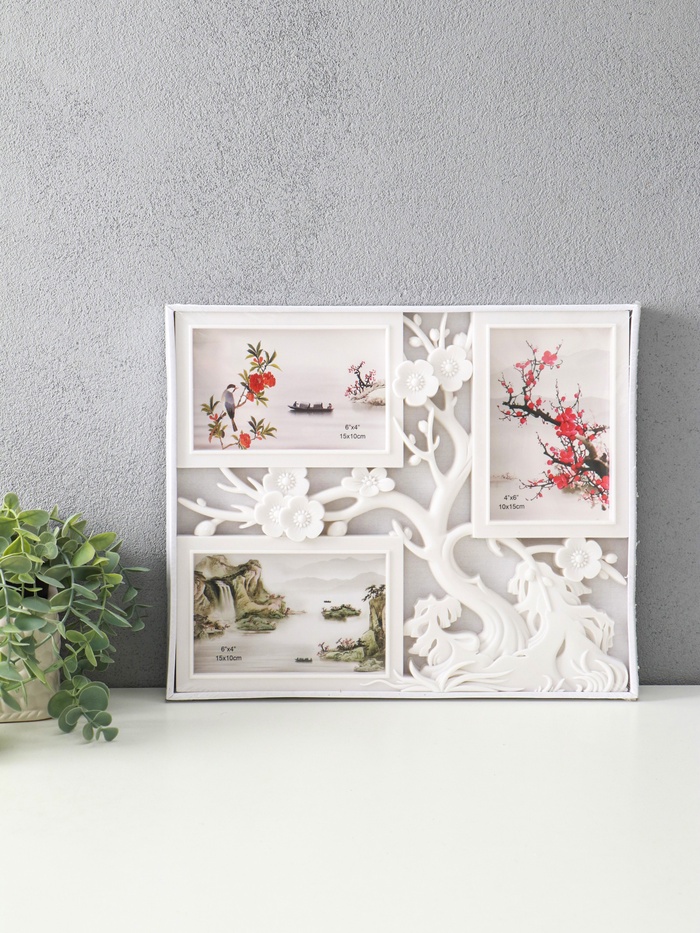 Фоторамка - коллаж на 3 фото 10×15 см «Вишнёвый сад», пластик, белый, 32×27 см