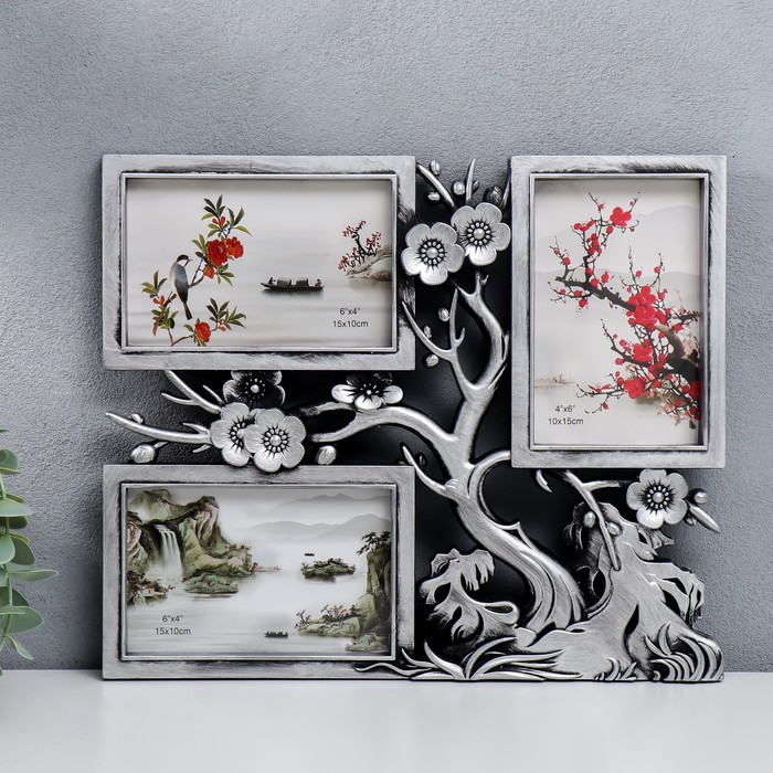Фоторамка - коллаж на 3 фото 10×15 см «Вишнёвый сад», т. Серебро, 32×27 см