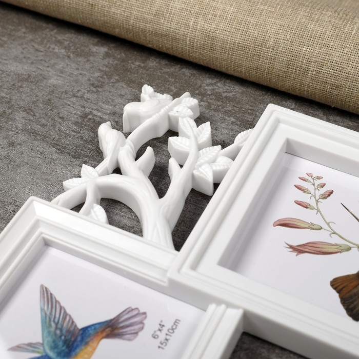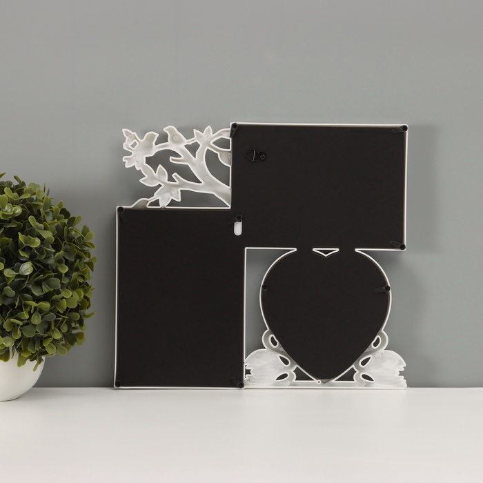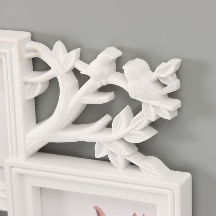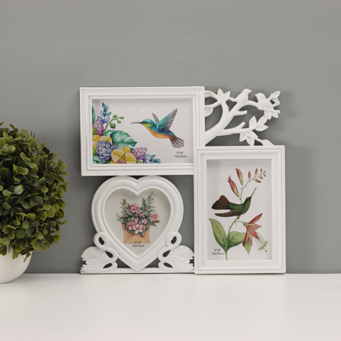 Фоторамка - коллаж на 3 фото 10×10 см, 10×15 см «Фламинго и птички», пластик, белая, 25.5×28 см