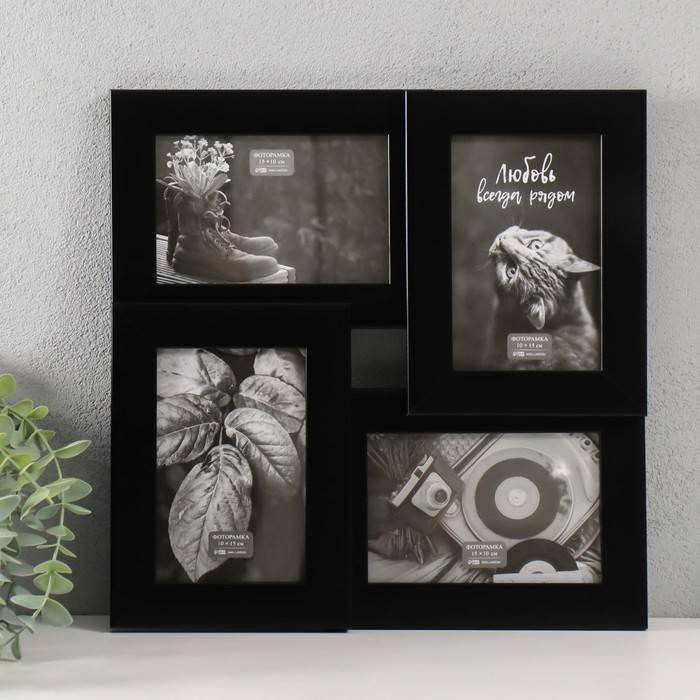 Фоторамка - коллаж на 4 фото 10×15 см «Аврора», чёрная, 31.5×31.5 см