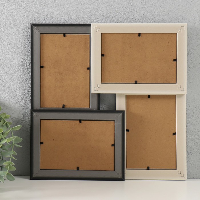 Фоторамка - коллаж на 4 фото 10×15 см «Аврора», чёрно-белая, 31.5×31.5 см