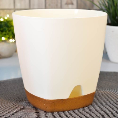 Горшок цветочный WOOD 1,35л D140мм с прикорневым поливом, сливочный/бук