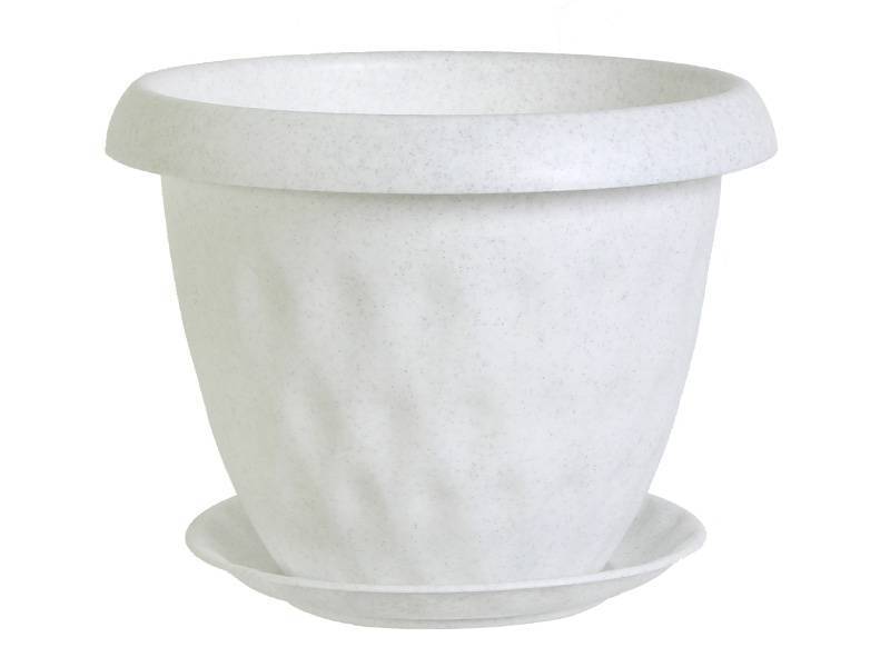 Горшок "Розетта" 13л с поддоном мрамор• благодаря оригинальному дизайну горшок хорошо впишется в любой интерьерный или ландшафтный дизайн• закругленный бортик удобен для подъема и переноса горшка вместе с растением• дренажные отверстия на дне и поддон предохраняют растения от избытка влагиЗаключаем договора по 44 ФЗ, 223 ФЗ
