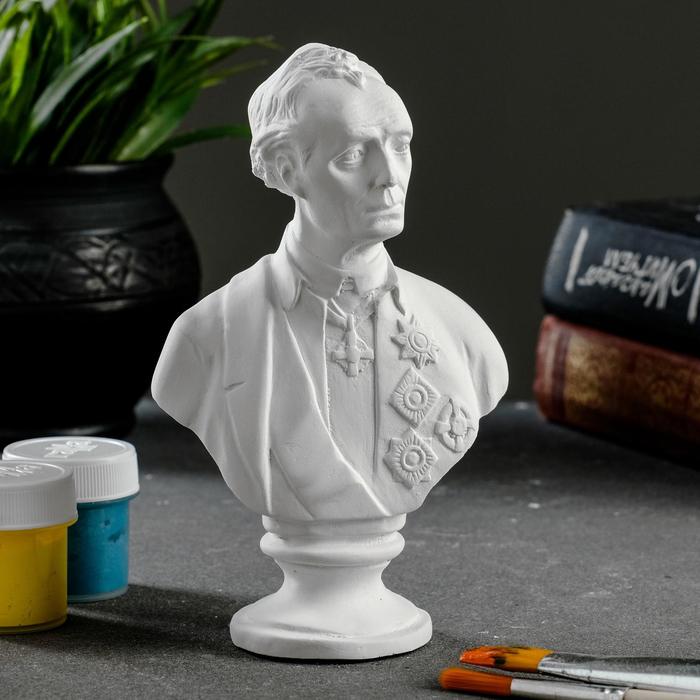Тонко проработанный бюст полководца, выполненный в классических традициях гипсовой скульптуры, воплощает уважение к истории и мастерству. Его компактные размеры (13 см в высоту) не умаляют значимости образа — наоборот, они подчёркивают эмоциональную сосредоточенность и строгость линий. Белоснежная поверхность без покрытия придаёт фигуре особую чистоту и благородство.