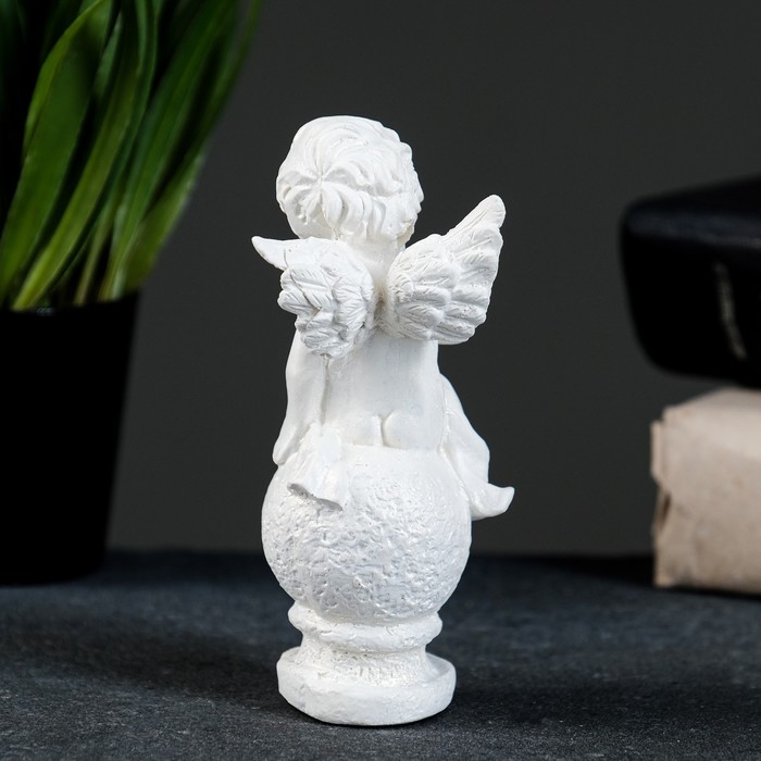 Фигурка создаёт в комнате особую атмосферу уюта. Её можно использовать как самостоятельный декор на полке или как трогательный подарок близкому человеку, который ценит простые и искренние вещи. Ангел на шаре — это маленький символ заботы, тихой радости и внутреннего баланса.