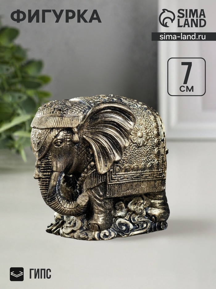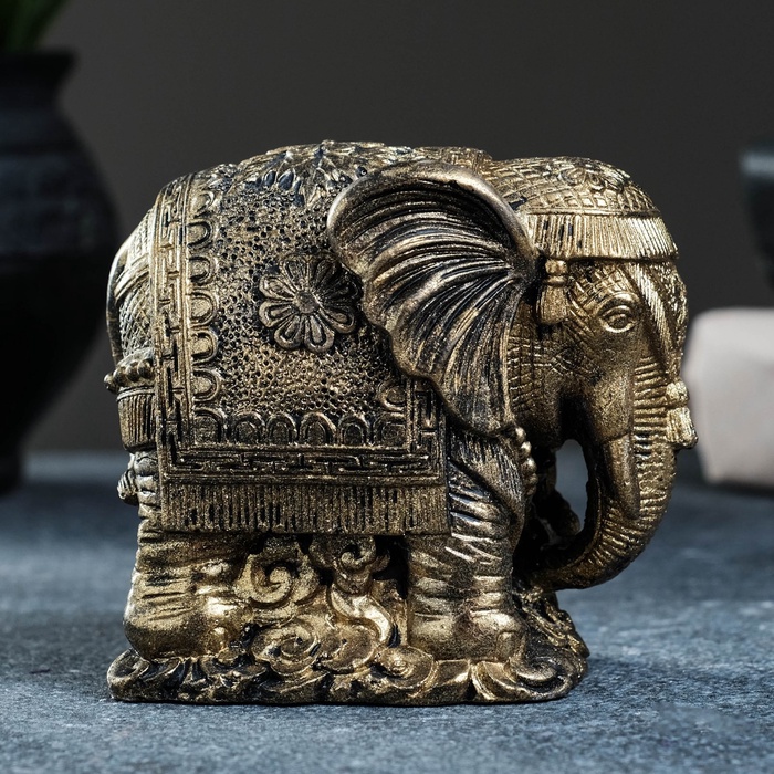 Фигурка гипс «Индийский слон», старое золото, 12×7×6 см