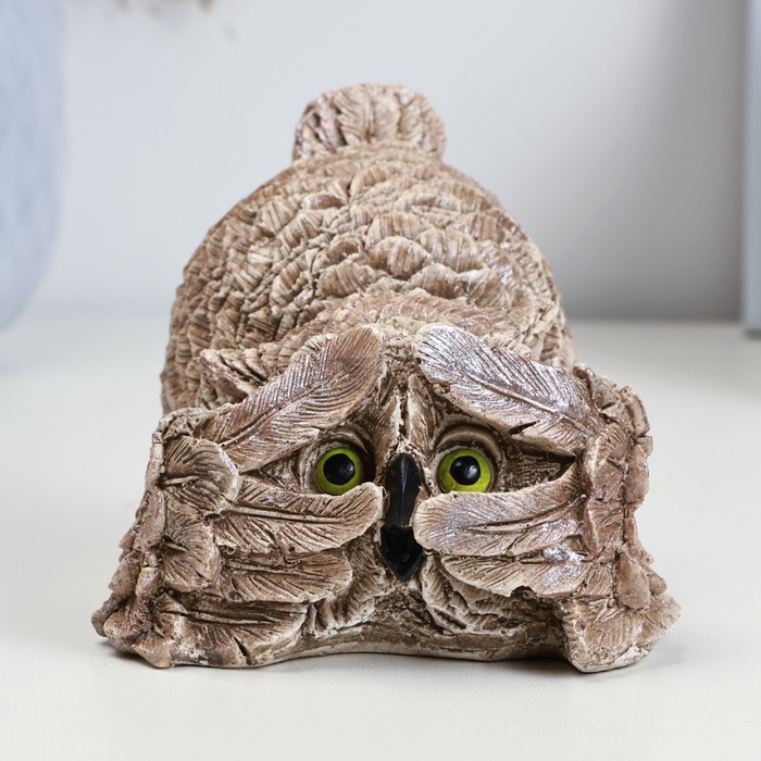 Фигурка гипс «Сова подглядывает», бежевая, 8×8.5×7 см
