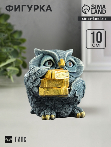 Фигурка гипс «Сова с книгами», серо-голубой, 10×6×6 см