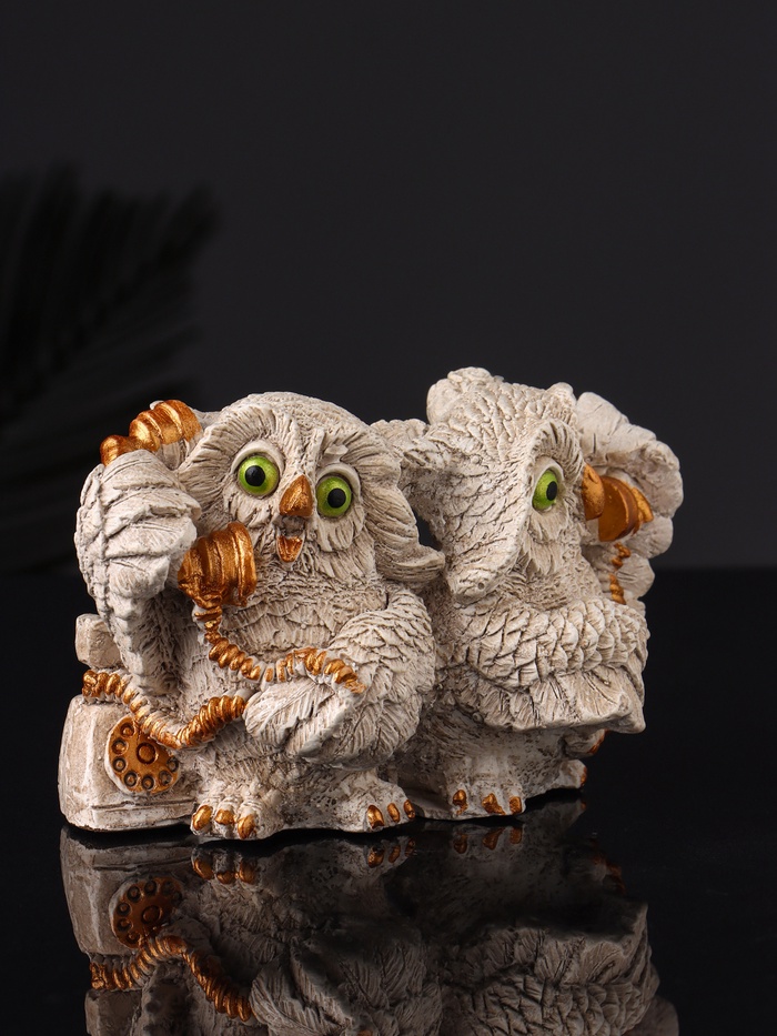 Представляем вашему вниманию очаровательную фигурку, которая добавит нотку уюта и легкой иронии в любой интерьер. Две мудрые совы, занятые разговором по телефону, словно переносят нас в мир тихих вечеров и душевных бесед. Эта композиция из гипса — не просто декоративный элемент, а символ связи, общения и тепла.