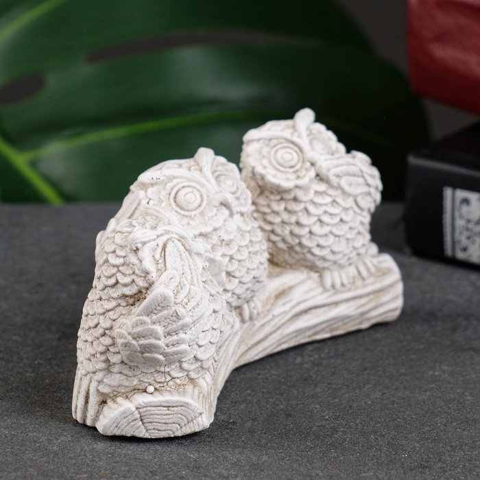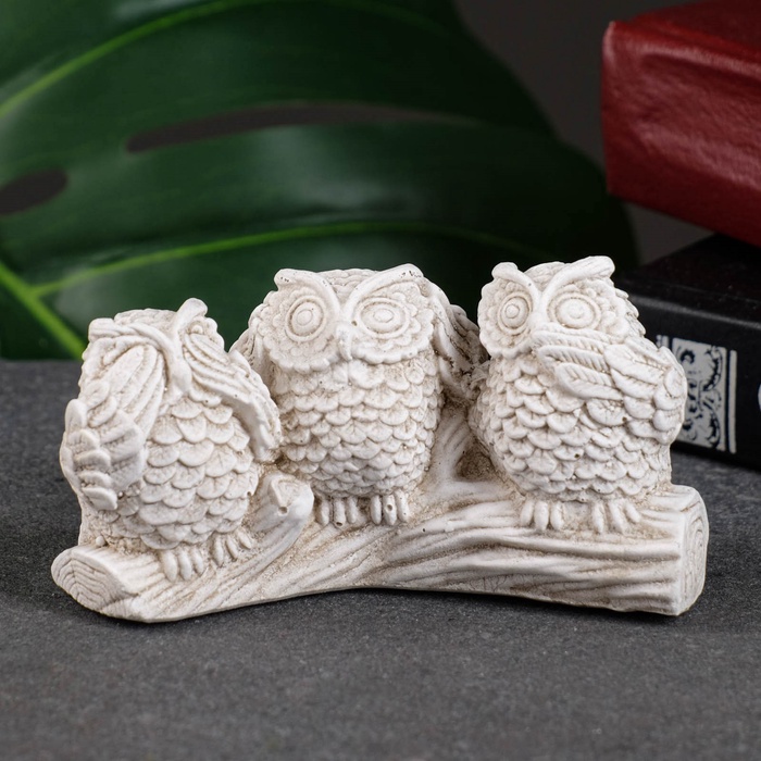 Фигурка гипс «Три совы на жердочке», слоновая кость, 10×6×5 см