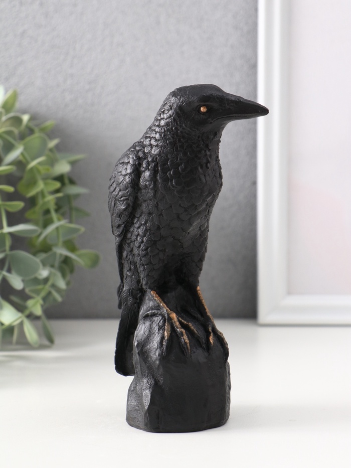 Эта скульптура ворона из гипса станет выразительным акцентом для интерьера или тематического декора. Глубокий чёрный цвет и точная проработка силуэта создают атмосферу таинственности и интеллектуальной глубины, присущей этой птице.