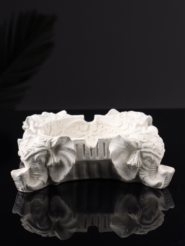 Элегантное решение для хранения мелочей, которое добавит вашему интерьеру нотку восточного шарма. Четыре резных слона, выполненные из натурального гипса, бережно поддерживают квадратную подставку, создавая гармоничную композицию в белом цвете.