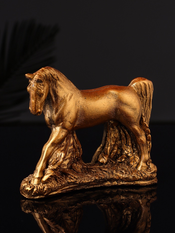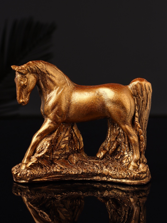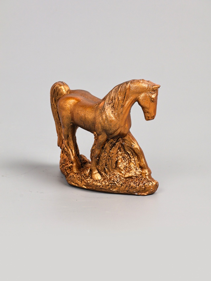 Элегантная гипсовая фигурка в бронзовом исполнении представляет собой изысканное воплощение образа коня, символа силы и благородства. С высотой 11 см и аккуратными габаритами 13×5 см, она гармонично впишется в любой интерьер, добавляя ему утончённости и глубины. Одноцветное бронзовое покрытие подчёркивает рельефные детали, создавая эффект благородной старины и подчеркивая статусность изделия.
