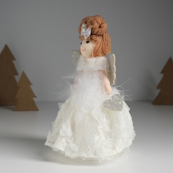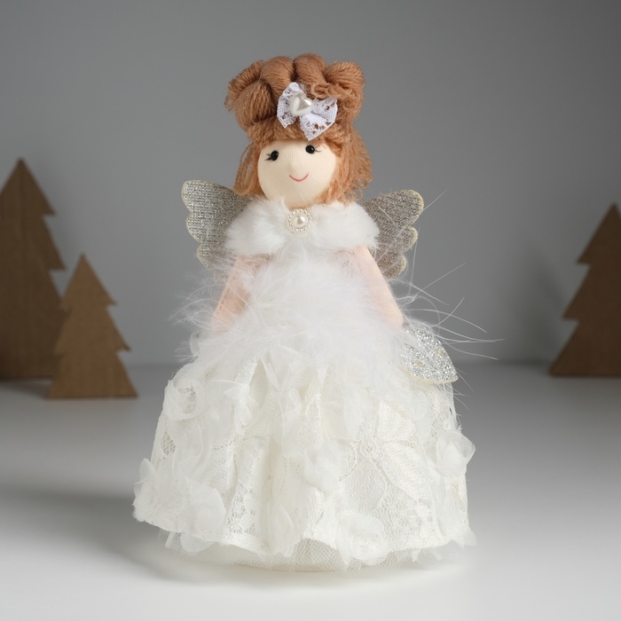 Этот нежный текстильный ангел в цветочном наряде словно сошёл со страниц волшебной сказки. Его воздушное белое платье с изящными цветочными узорами и лёгкие крылышки создают ощущение невесомости и чистоты, наполняя пространство теплом и светом.