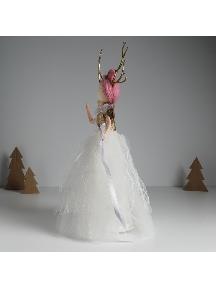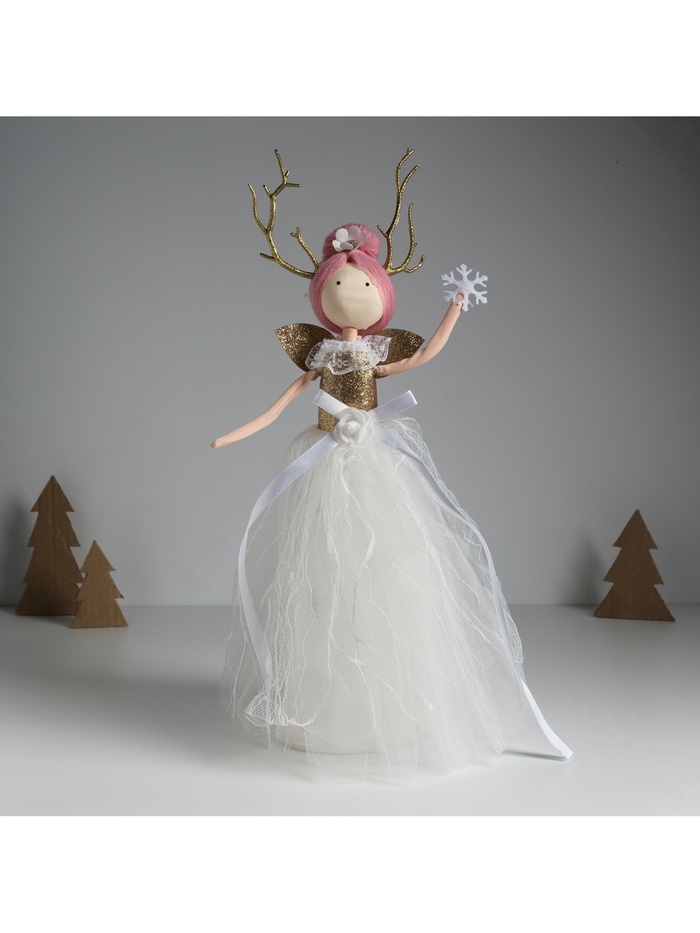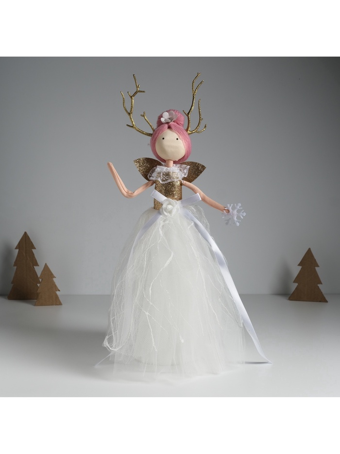 * Изящный образ лесной феи: Куклу отличает нежный белый наряд, напоминающий о первом снеге и новогодних чудесах. Ее костюм в тематике феи и ангела создает ощущение праздника и волшебства, делая ее прекрасным украшением для дома в любое время года.