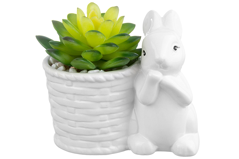 Декоративное кашпо «Зайчонок с цветком» станет необычным домашним украшением. Выполнено из керамики в виде белого зайчика с горшочком. Размер изделия – 11х7,5х10 см. Поставляется в комплекте с несъёмным искусственным растением. Красивая фигурка в виде милого животного освежит ваше пространство и добавит ему природной чистоты. Разместите её на столе, полке или тумбочке, чтобы украсить помещение. Поставьте на рабочем месте или в офисе, чтобы добавить умиротворения даже самым тяжёлым будням. Настольная статуэтка в виде милого кролика найдёт место в любой комнате – в гостиной, спальне, кухне или прихожей. Добавьте вашему дому атмосферу маленького чуда. Не рекомендуется применять абразивные моющие средства. Поставляется в яркой картонной коробке – благодаря ей вам не потребуется дополнительная подарочная упаковка. В коллекции бренда Elan Gallery вы найдёте большой выбор декоративной посуды и сувениров – каждый обязательно подберёт вариант на свой вкус. Изделия станут чудесным подарком для родных, близких и коллег. Наполните пространство вокруг себя уютом и эстетикой!