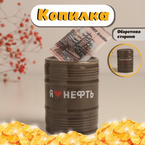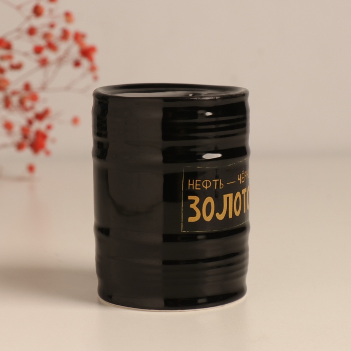 Копилка для денег «Банка-бочка. Нефть», керамика, чёрная, 6.5×6.5×9 см