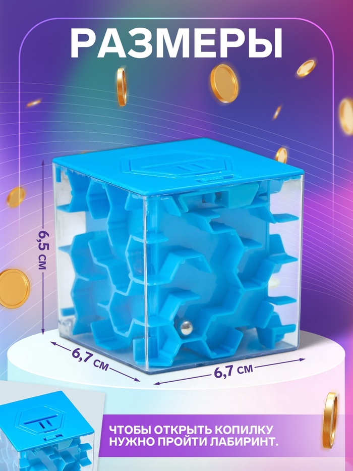 Копилка «Лабиринт» — для тех, кто очень хочет накопить денег, но у него не хватает терпения и силы воли. Положить деньги в копилку очень просто, а вот чтобы достать свои сбережения, придется поломать голову. Замечательный подарок для любителей оригинальных и практичных вещей.