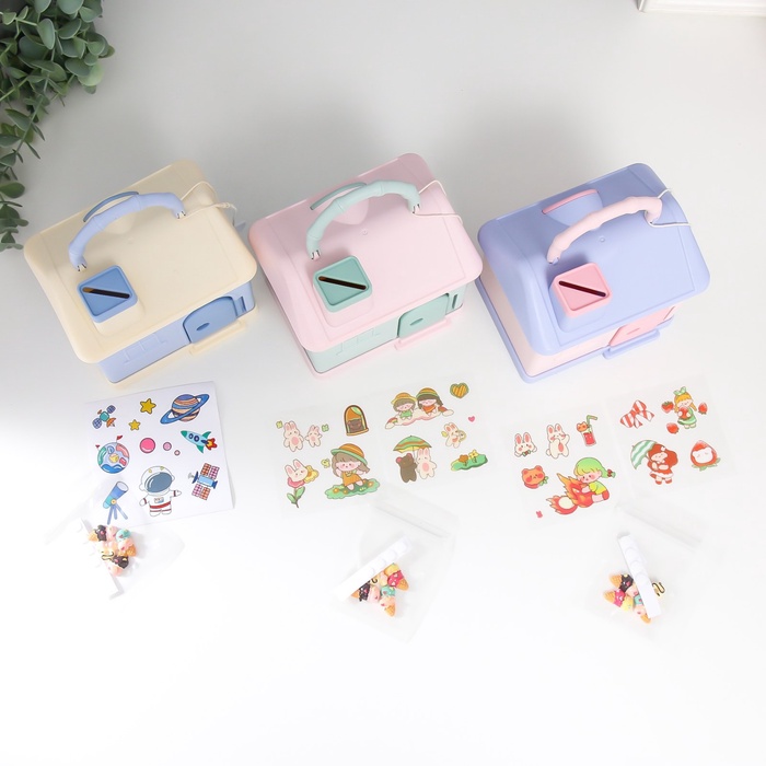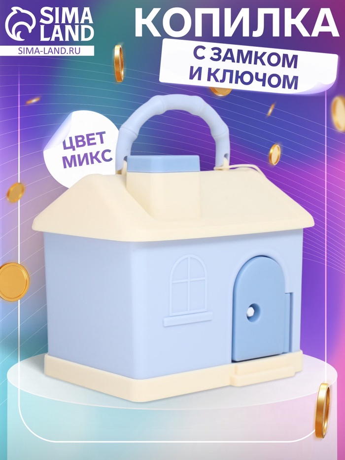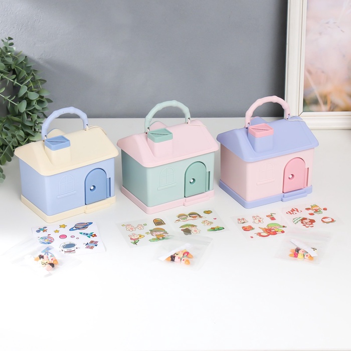 Копилка для денег с замком и ключом «Домик в нежных тонах», наклейки и декор для украшения, пластик, 14×10×13 см, МИКС