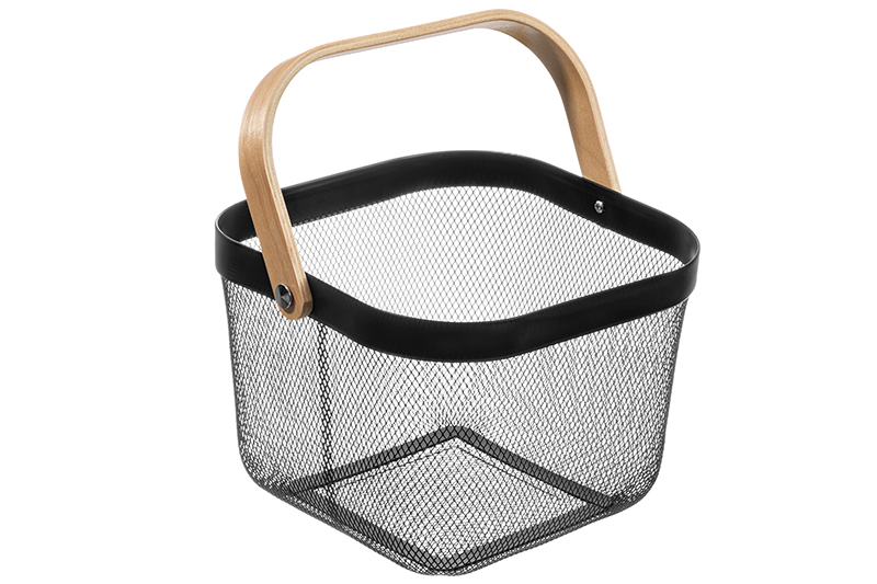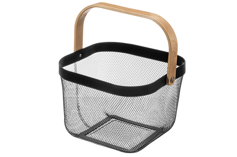Корзина 26*26*18 см "Черная" с деревянной ручкой