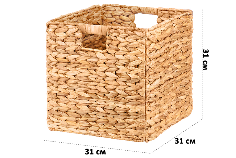 Корзина плетеная 31*31*31 см с ручками, складная, водный гиацинт