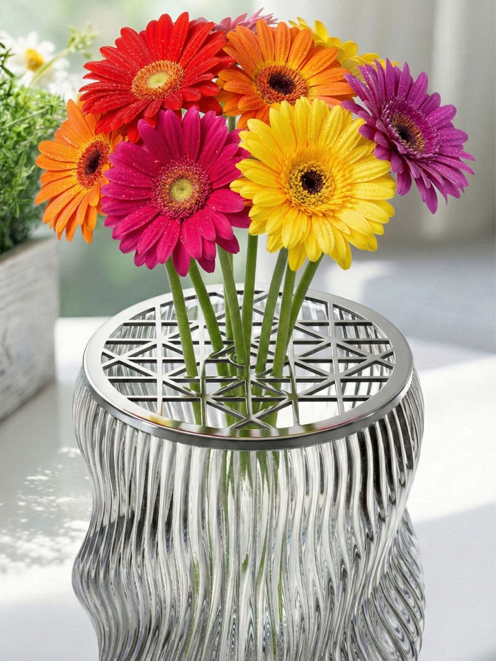 Создавайте гармоничные и устойчивые букеты с металлической крышкой «Классик» диаметром 15 см. Благодаря продуманной конструкции с множеством мелких прорезей, она надёжно фиксирует стебли, позволяя легко формировать симметричные и воздушные флористические композиции.