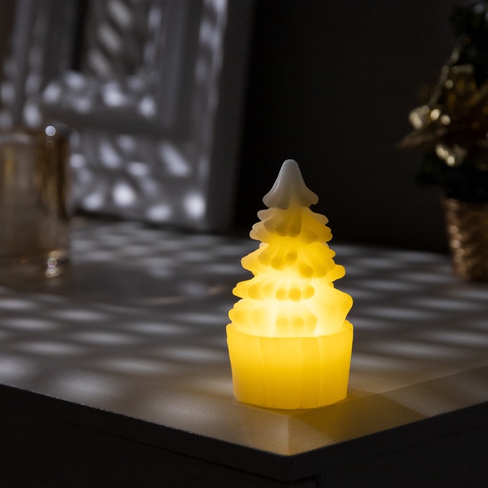 Светодиодная фигура «Свеча ёлка» 4.5×10×4.5 см, пластик, от батареек AG13×3, свечение тёплое белое