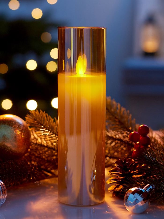 Золотистый оттенок этой светодиодной свечи придаёт интерьеру благородство и изысканность, создавая атмосферу уюта и тепла. Высота 20 см и компактный диаметр 5,5 см делают её универсальным элементом декора, который легко впишется в любую обстановку.