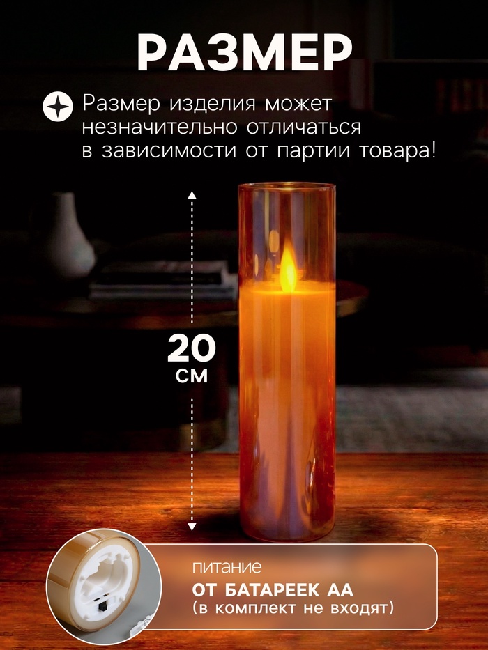Эта светодиодная свеча станет идеальным дополнением к вашему интерьеру, придавая ему атмосферу спокойствия и изящества в любое время года.