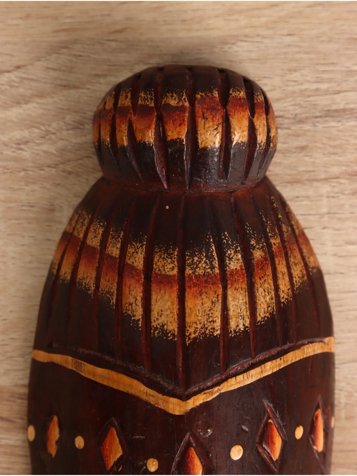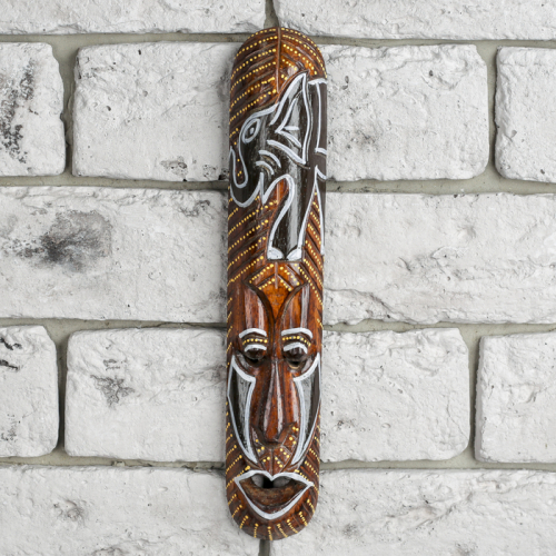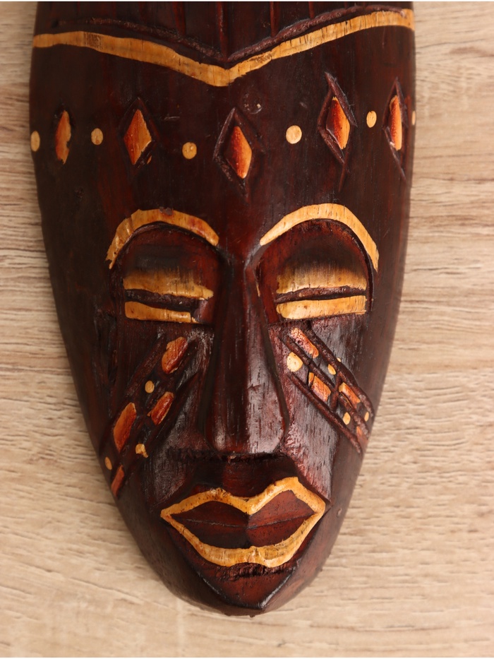 Почувствуйте себя настоящим аборигеном, устройте тематическую вечеринку в кругу родных и близких, украсьте интерьер соответствующими аксессуарами и не забудьте про наряд. И кстати… такая ##name## будет как раз в тему! Она выполнена из натурального экологически чистого дерева, каждая деталь, каждый рубец выполнялся вручную индонезийскими ремесленниками. Не у каждого найдется такая уникальная маска! Ведь ее можно повышать на стену, словно панно, привнеся нотки экзотики в Ваш дом.