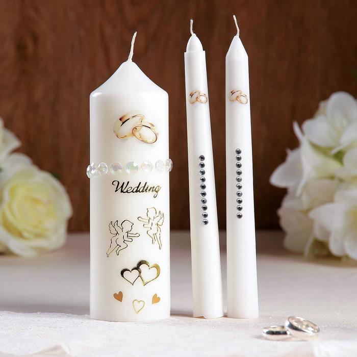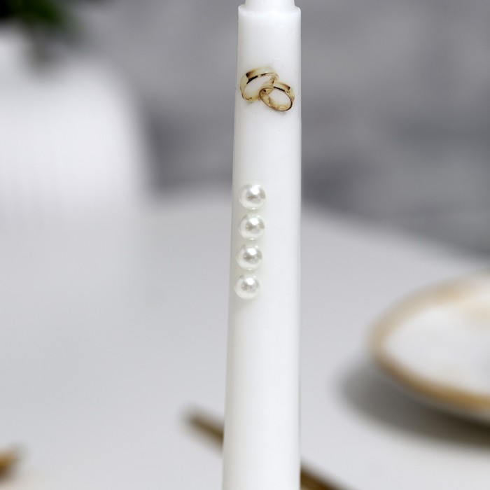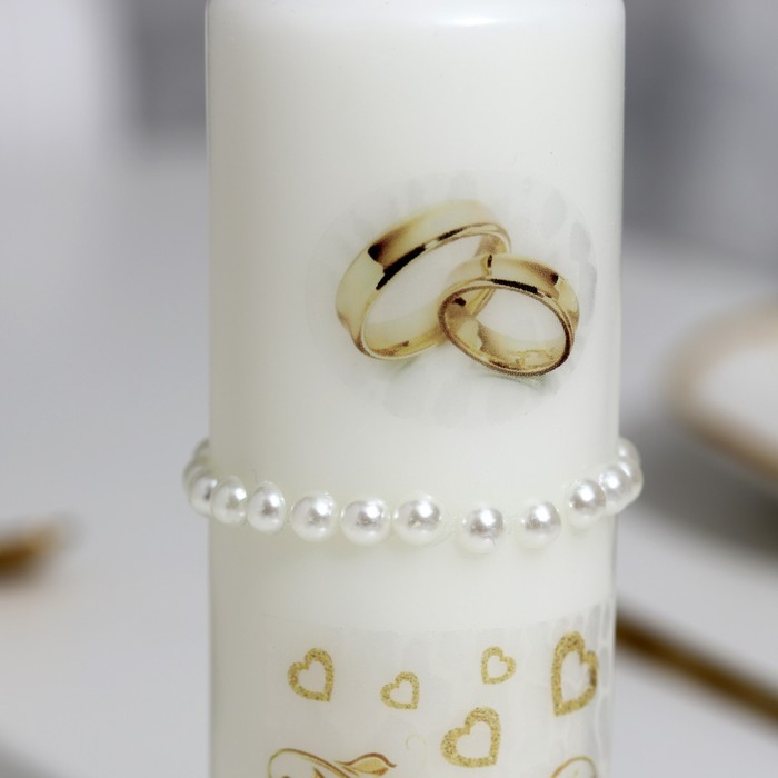 Набор свадебных свечей с бусинами «Обручальные кольца», белый, ручная работа, МИКС