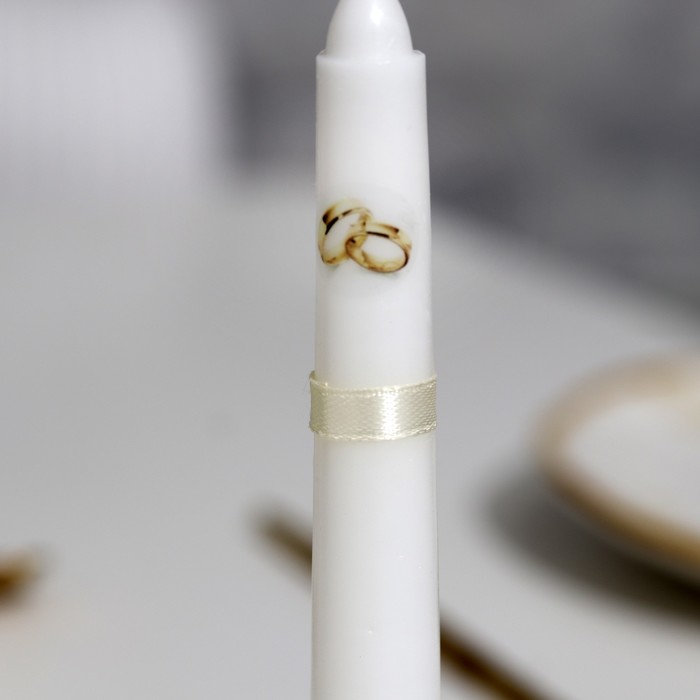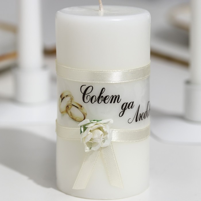 Набор свадебных свечей «Совет да любовь с лентой», 3 шт. шампань, 2 шт.: 1.8×15 см; 1 шт.: 5.2×9.5 см