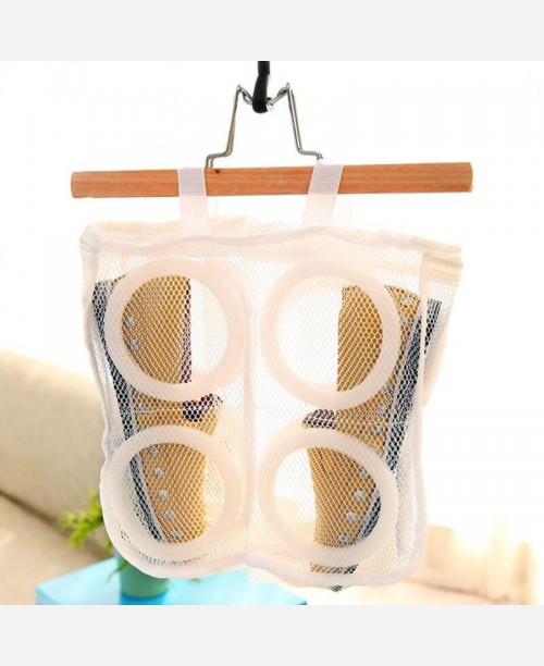 Мешок можно использовать и для сушки обуви. Он оснащен удобными петлями, за которые вы можете подвесить его в любом месте, даже не вынимая кроссовки после стирки.