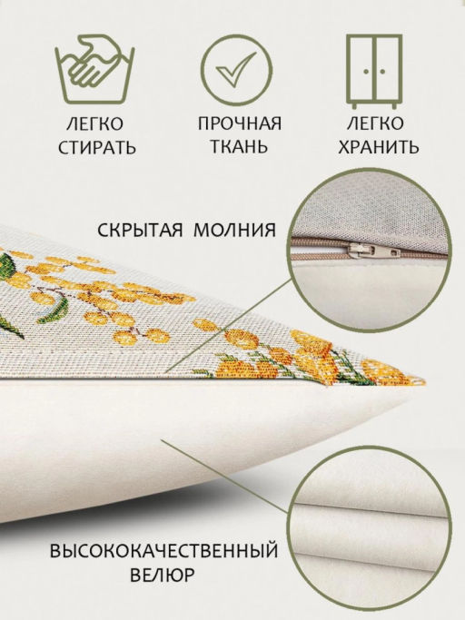 Мимоза Наволочка 45х45 см односторонняя 9645
