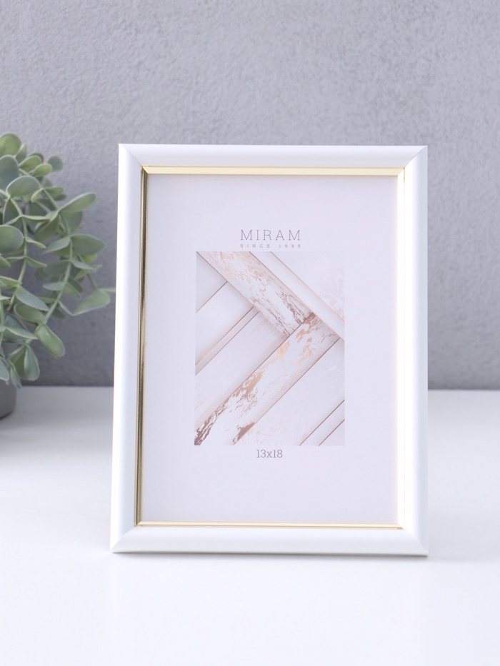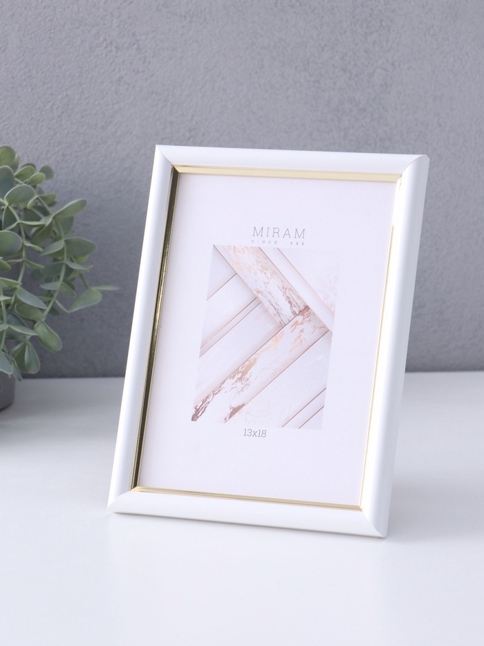 Фоторамка для фото 13×18 см «МИРАМ», пластик, белый с золотом, (пластиковый экран)