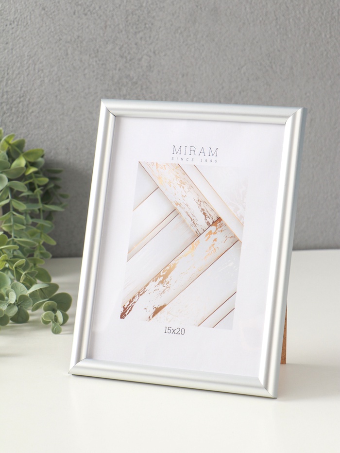 Фоторамка для фото 15×20 см «МИРАМ», пластик, серебро, (пластиковый экран)