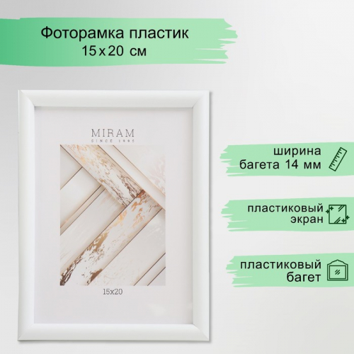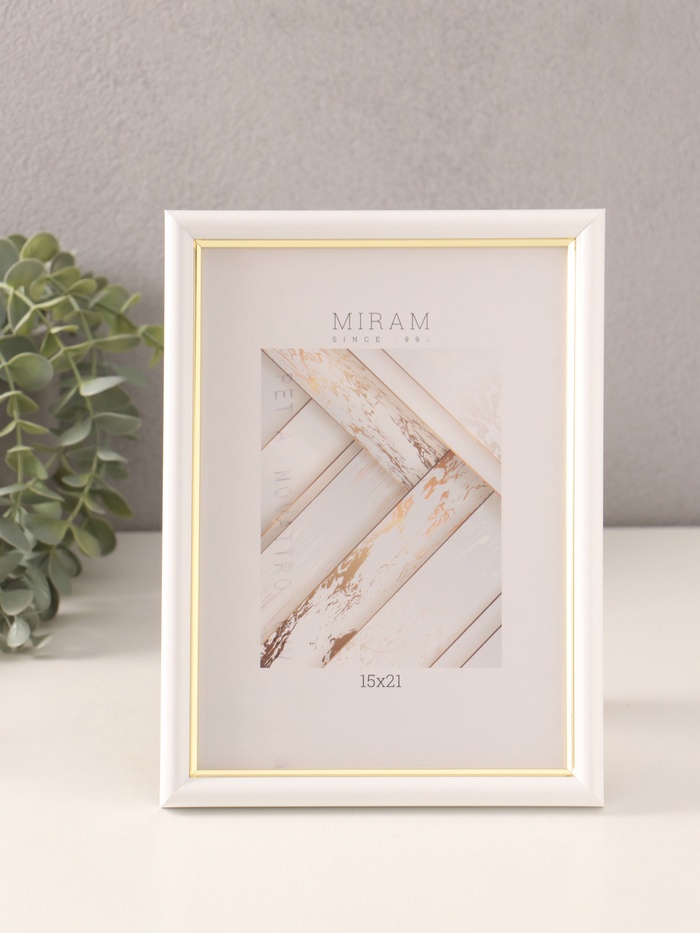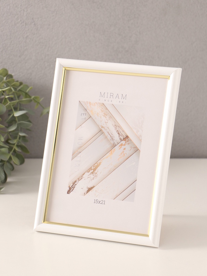 Фоторамка для фото 15×21 см Gallery, пластик, белый с золотом, (пластиковый экран)