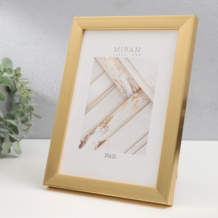 Фоторамка для фото 15×21 см «МИРАМ», пластик под золото, (пластиковый экран)