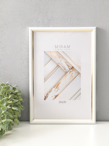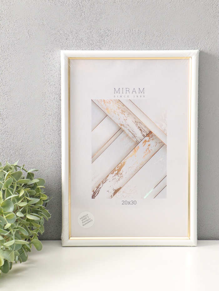 Фоторамка для фото 20×30 см «МИРАМ», пластик, белый с золотом, (пластиковый экран)