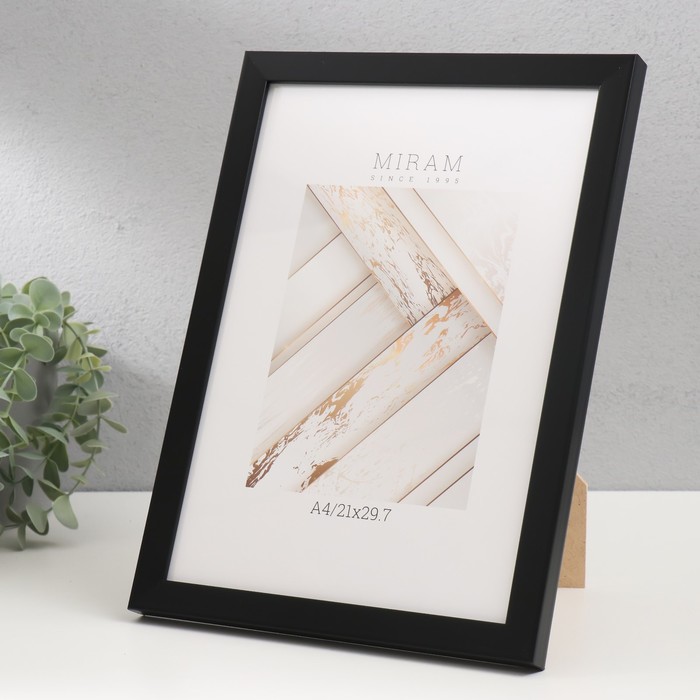 Фоторамка для фото 21×29.7 см (A4) «МИРАМ», пластик, чёрный, (пластиковый экран)