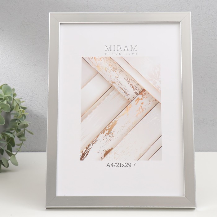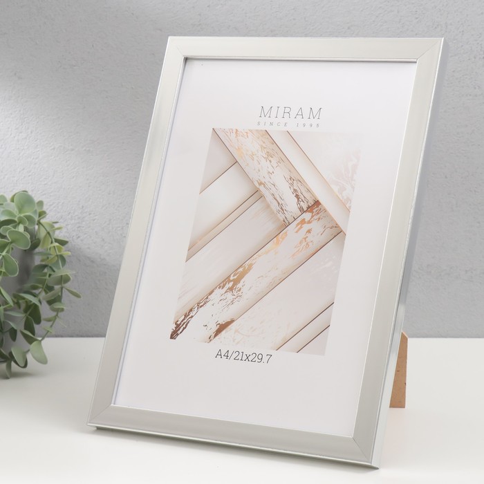 Фоторамка для фото 21×29.7 см (А4) «МИРАМ», пластик, серебро, (пластиковый экран)