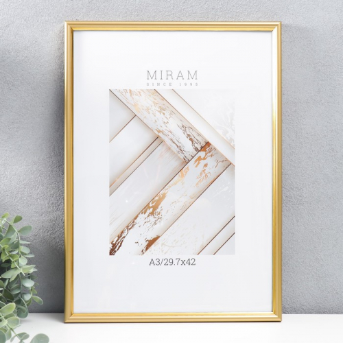 Фоторамка для фото 29.7×42 см, (формат A3) «МИРАМ» пластик под золото, (пластиковый экран)