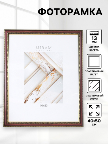 Фоторамка для фото 40×50 см «МИРАМ», пластик, тёмный орех, (пластиковый экран)
