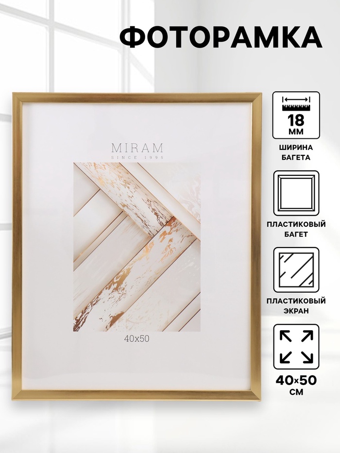 Фоторамка для фото 40×50 см «МИРАМ», пластик, золото, (пластиковый экран)