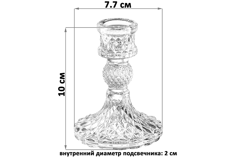 Набор 2 подсвечников размером 7,7x7,7x10 см выполнен из прозрачного стекла и прекрасно дополнит интерьер вашей комнаты, гостиной или спальни. Внутренний диаметр каждого – 2 см. Поверхность украшена геометрическим орнаментом в виде ромбиков разного размера, что придаёт ему стильный и изысканный вид. Глубокая чашечка с высокими бортиками не допускает протечки горячего воска и гарантирует плотную посадку свечи. Благодаря этому подсвечник подойдёт для высоких свечей. Он поможет создать приятную атмосферу для романтического вечера. Оригинальный дизайн сделает его прекрасным элементом декора, и он привнесёт уют в квартиру или кабинет. Будет отлично сочетаться с другими аксессуарами для создания декоративных композиций. Станет ярким украшением стола на любой праздник: Новый год, Рождество, день рождения или свадьбу. Не рекомендуется применять абразивные моющие средства. Поставляется в картонной коробке. Такой подсвечник будет необычным и желанным подарком для жены или матери.