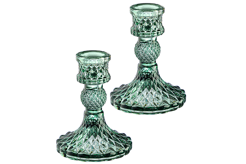 Набор 2 подсвечников 7,7*7,7*10 см зеленый, стекло